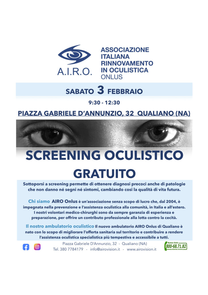 Prosegue la campagna di screening oculistico generale con il secondo appuntamento dell’anno con la prevenzione della vista, come ogni mese, presso il nostro Ambulatorio Oculistico AIRO Onlus